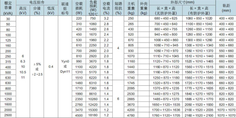 干式變壓器生產廠家技術參數: